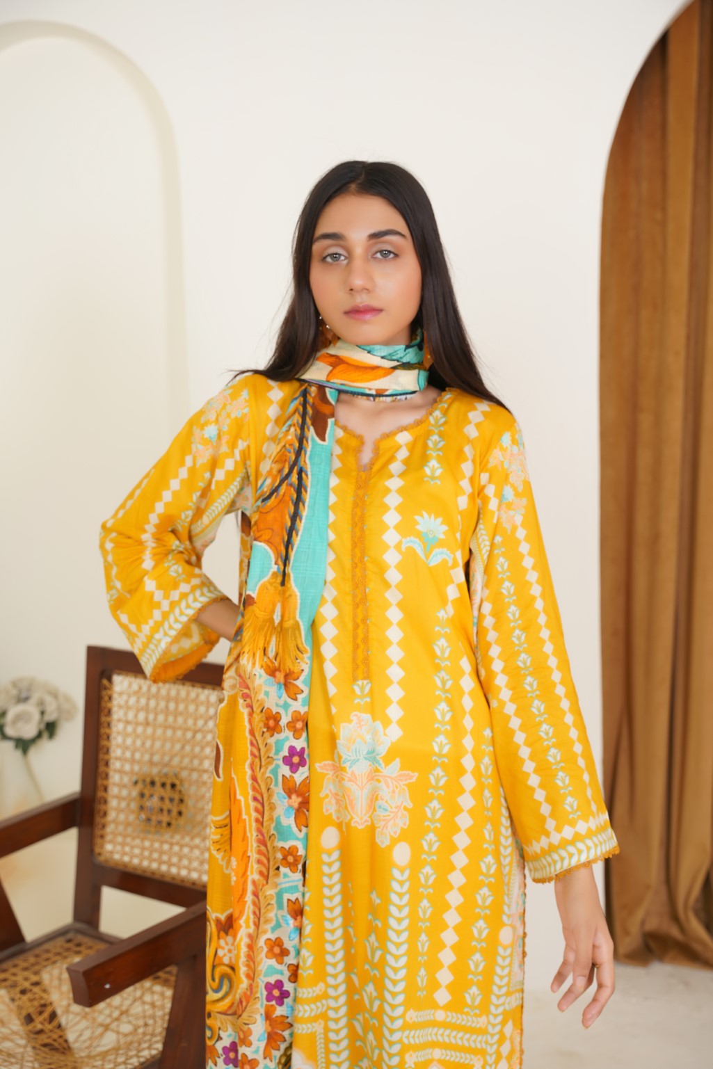 Step into charm and tradition with this playful Eastern wear piece. Designed to brighten your wardrobe, It blends classic elegance with a fun twist, perfect for festive occasions or casual gatherings.