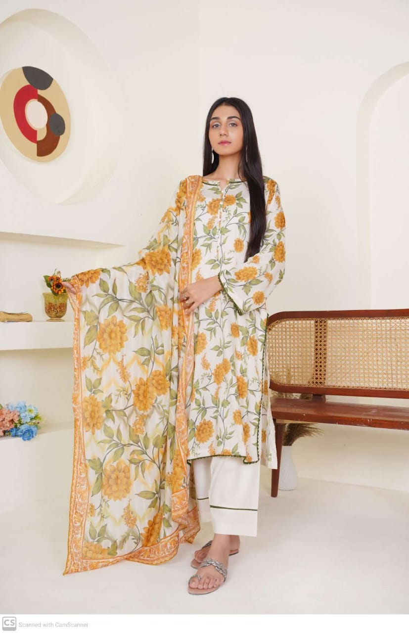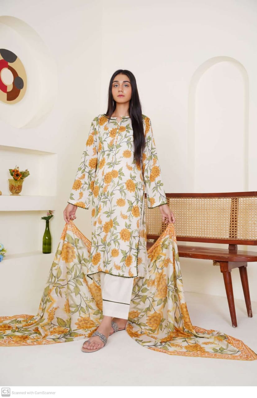 Printed lawn premium quality 3 Pcs stitched suit.